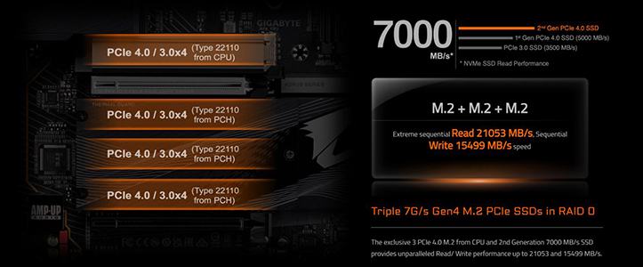 Z790 AORUS ELITE AX hỗ trợ khe cắm M.2 PCIe 4.0 và cung cấp hỗ trợ NVMe SSD RAID để tăng hiệu suất đáng kinh ngạc. Tạo cấu hình RAID với thiết bị lưu trữ PCIe để tận hưởng tốc độ truyền dữ liệu nhanh nhất trên nền tảng Intel thế hệ mới. |